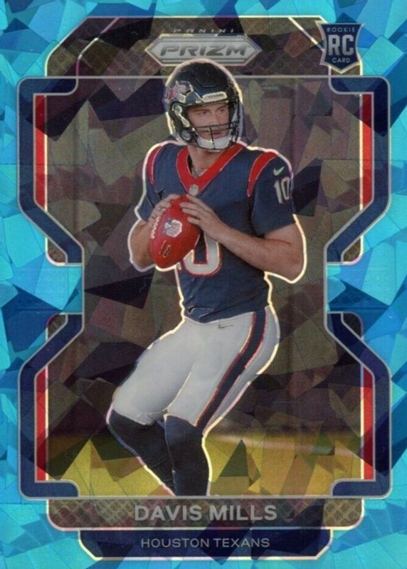 2021 Panini Prizm Davis Mills BLUE Ice Rookie RC 352 RAW Texans #D /99