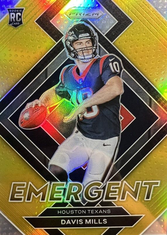 2021 Panini Prizm Davis Mills GOLD EMERGENT /10 Rookie HOUSTON TEXANS #E-18