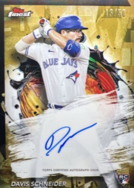 2024 Topps Finest #FA-DS Davis Schneider RC Gold #’d 41/50 Autograph Blue Jays