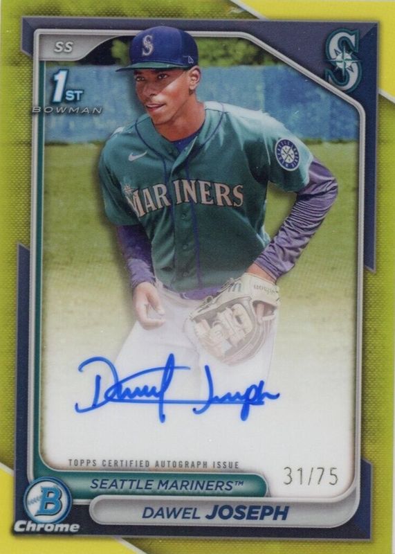 Best Prices Available For Sale of Dawel Joseph 2024 Bowman Chrome #CPA-DJ Prospect Auto - Yellow Refractor /75 (1st)
