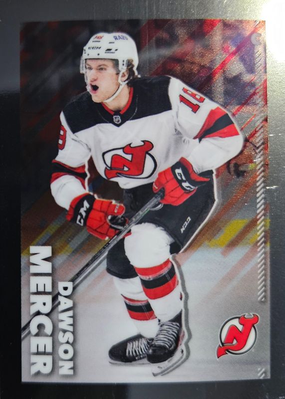 This card is 1 of 7 Dawson Mercer's card variations in the 2022 Topps Chrome NHL Sticker Collection set being tracked by Sports Card Investor, including 1971-72 Topps NHL Rookie, Refractor /99, Gold Refractor /50, Orange Refractor /25, and Red Refractor /5.