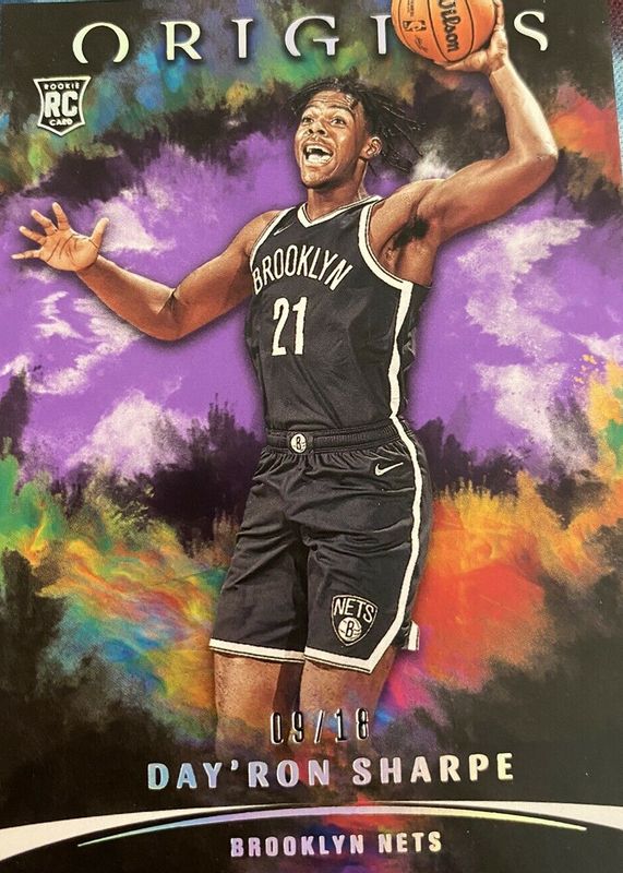 DAY’RON SHARPE 2021-22 PANINI ORIGINS FOTL PURPLE /18 ROOKIE BROOKLYN NETS RC SP