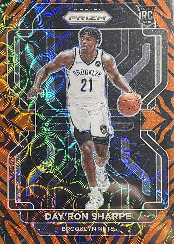 The Day'Ron Sharpe 2021 Prizm #281 Choice Tiger Stripe /(SSP) Rookie card in Raw condition has not changed in price in the last 30 days and was last sold for $50.00 .