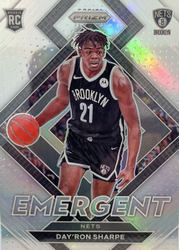 2021-22 Panini Prizm DAY'RON SHARPE RC ROOKIE Emergent Silver NETS #27