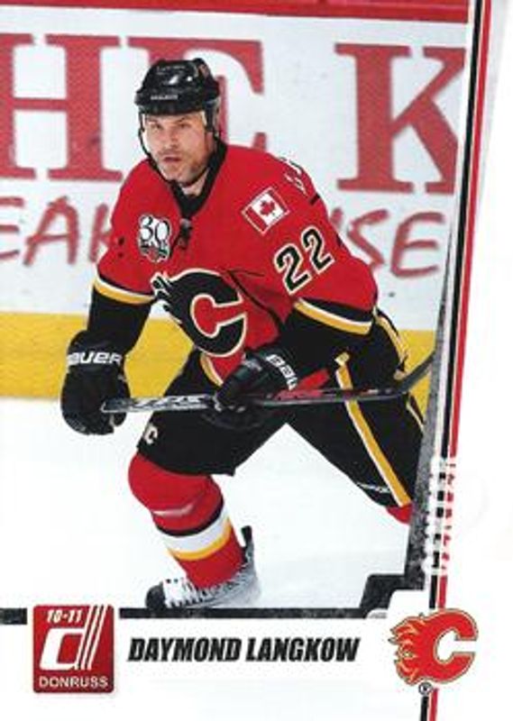The Daymond Langkow 2010 Donruss #104 Base card is 1 of 3 Daymond Langkow's card variations in the 2010 Donruss set being tracked by Sports Card Investor, including Press Proofs /100, and die-cut Gems /30.