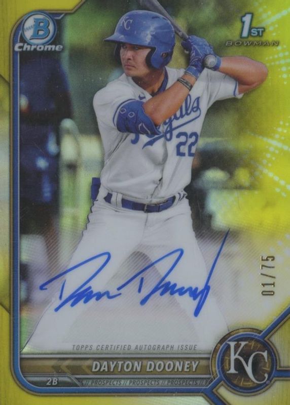 Best Prices Available For Sale of Dayton Dooney 2022 Bowman #CPA-DDO Chrome Prospect Auto - Yellow Refractor /75 (1st)