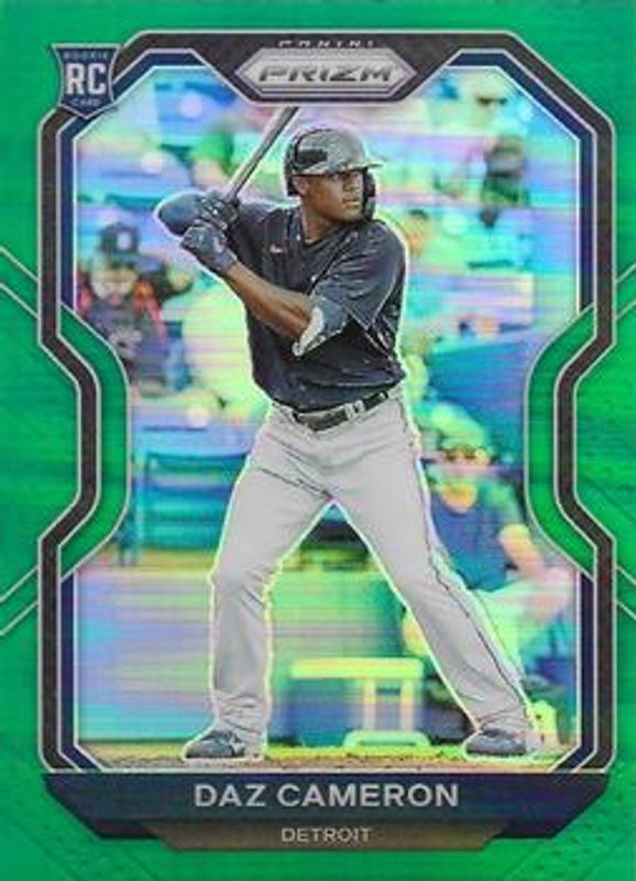 The Daz Cameron 2021 Prizm #177 Green Rookie card is 1 of 70 Daz Cameron's card variations in the 2021 Prizm set being tracked by Sports Card Investor, including Base, Blue, Blue Velocity, Carolina Blue, and Cosmic Haze.