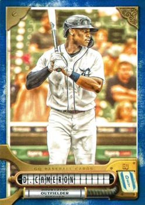 The Daz Cameron 2022 Topps Gypsy Queen #64 Indigo /250 card is 1 of 21 Daz Cameron's card variations in the 2022 Topps Gypsy Queen set being tracked by Sports Card Investor, including Base, Green, Missing Black Plate, Missing Nameplate, and Team Logo Swap.