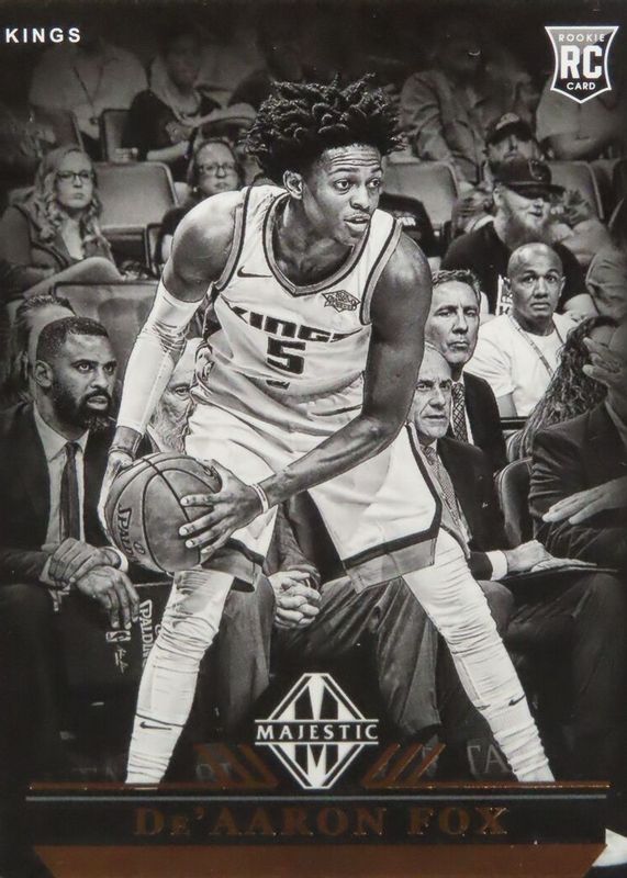 The De'Aaron Fox 2017 Chronicles #305 Majestic Rookie card in Raw condition has not changed in price in the last 30 days and was last sold for $1.99 .