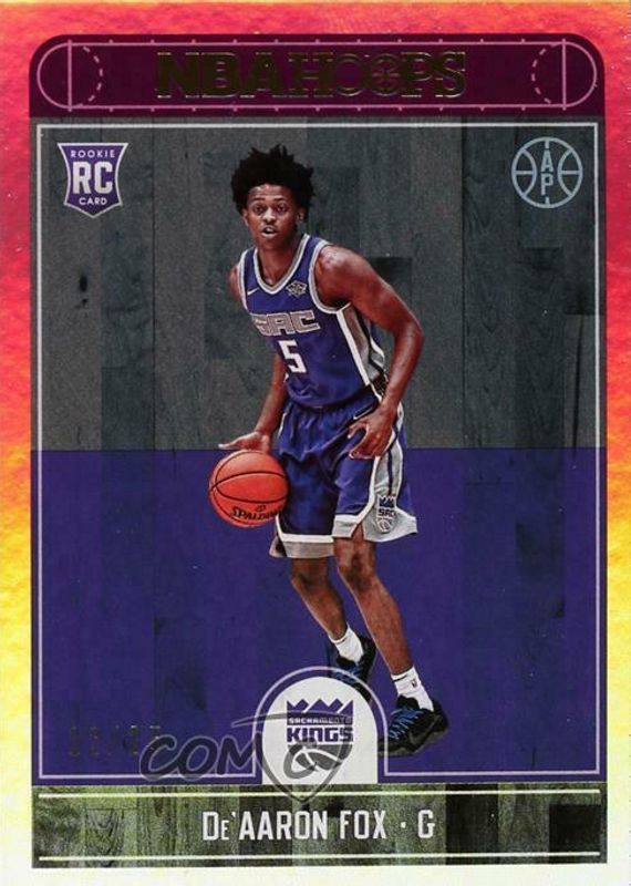 This card is 1 of 31 De'Aaron Fox's card variations in the 2017 Hoops set being tracked by Sports Card Investor, including Base, Premium Factory Set /199, Blue, Class of 2017, and Faces of the Future.
