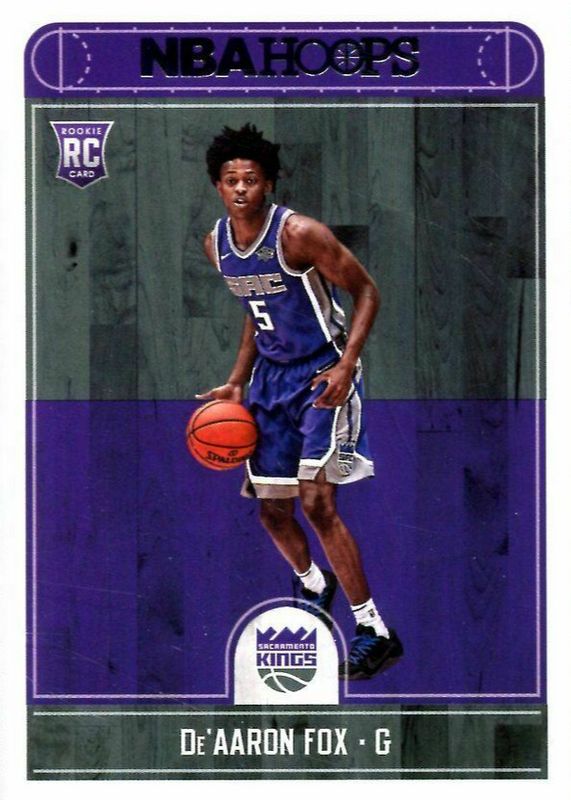 The De'Aaron Fox 2017 Hoops #255 Base Rookie card in Raw condition has moved down -$1.76 (-64.0%) in the last 30 days and was last sold for $0.99 .
