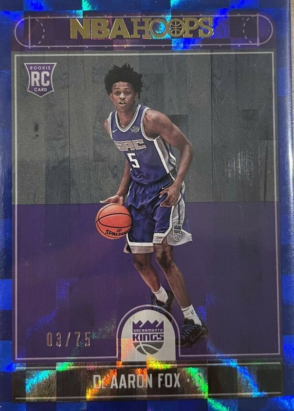Blue Checkerboard /75 - 2017-18 Panini NBA HOOPS De'Aaron Fox Rookie Card