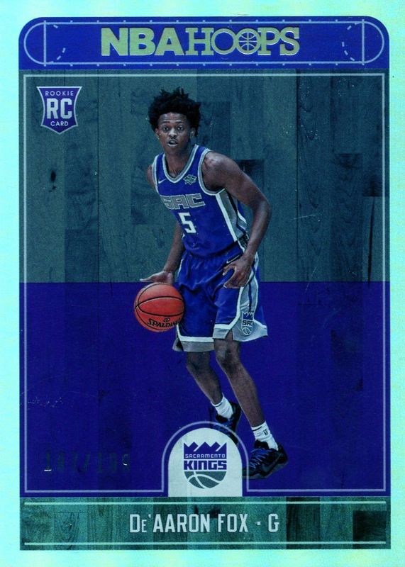 This card is 1 of 31 De'Aaron Fox's card variations in the 2017 Hoops set being tracked by Sports Card Investor, including Base, Premium Factory Set /199, Blue, Class of 2017, and Faces of the Future.