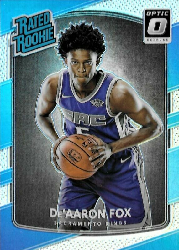 The De'Aaron Fox 2017 Optic #196 Holo Rookie card in Raw condition has moved down -$1.49 (-14.9%) in the last 30 days and was last sold for $8.50 .