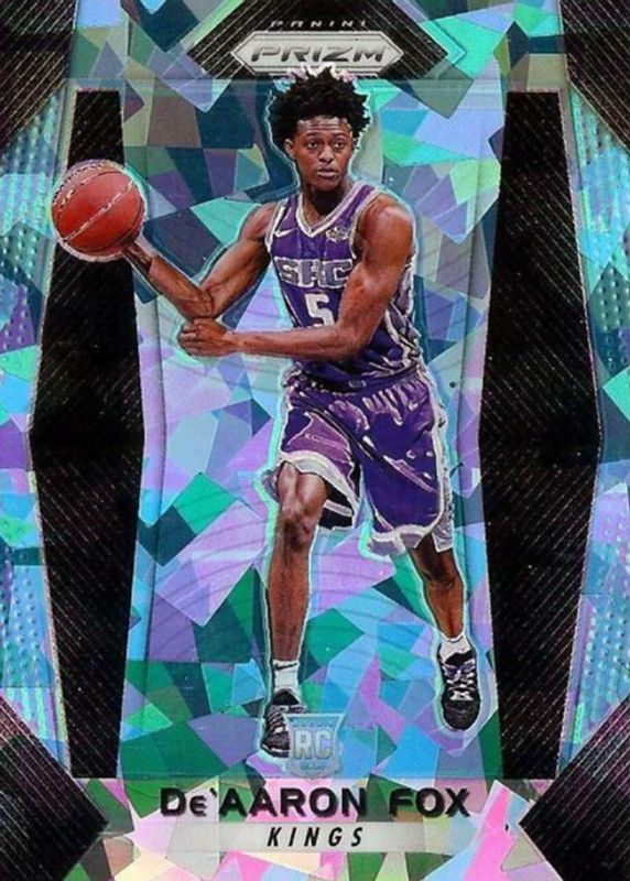 This card is 1 of 54 De'Aaron Fox's card variations in the 2017 Prizm set being tracked by Sports Card Investor, including Base, Fast Break, Green, Hyper, and Red White Blue.