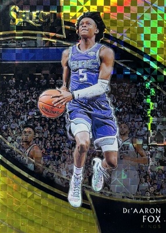 This card is 1 of 8 De'Aaron Fox's card variations in the 2018 Select set being tracked by Sports Card Investor, including Courtside Silver, Courtside Copper /60, Courtside Zebra /(SSP), Courtside Tie-Dye /25, and Courtside FOTL Neon Orange Pulsar /13.