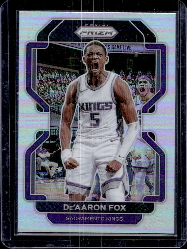 The De Aaron Fox 2021 Prizm #148 Silver card is 1 of 81 De Aaron Fox's card variations in the 2021 Prizm set being tracked by Sports Card Investor, including Base, Blue NBA 75th Anniversary, Blue Wave, Choice Blue Yellow Green, and Factory Set Blue Hyper.