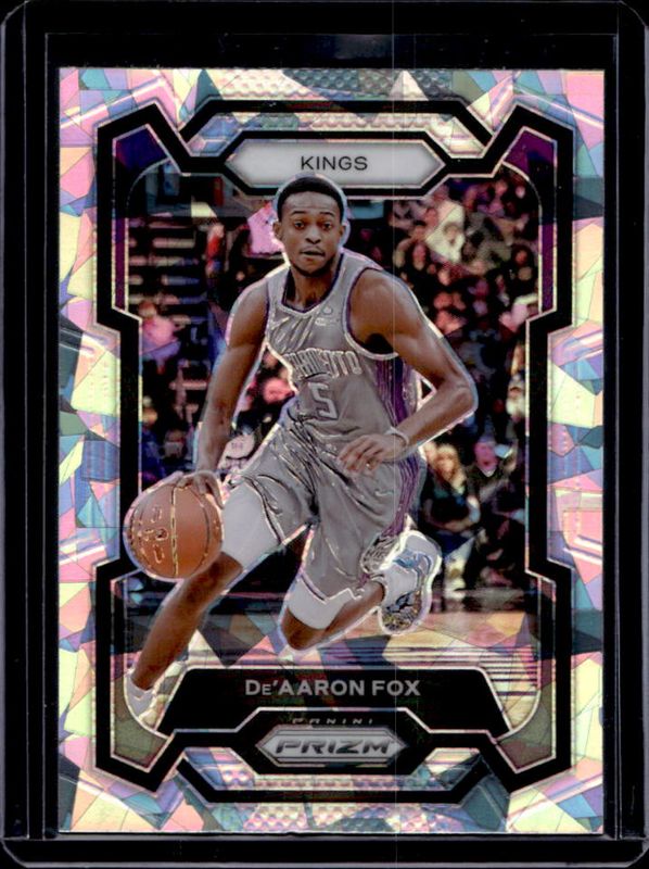 The De'Aaron Fox 2023 Prizm #6 Ice card is 1 of 86 De'Aaron Fox's card variations in the 2023 Prizm set being tracked by Sports Card Investor, including Base, Blue Wave, Choice Blue Yellow Green, Fast Break, and Green.