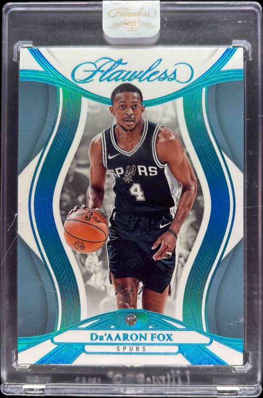 The De'Aaron Fox 2024 Flawless #15 Platinum /1 card is 1 of 44 De'Aaron Fox's card variations in the 2024 Flawless set being tracked by Sports Card Investor, including Base /20, Gold /10, Emerald /5, Fuchsia /3, and Distinguished Autographs /25.