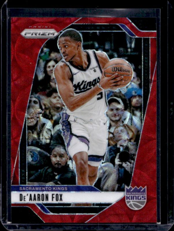 The De'Aaron Fox 2024 Prizm #58 Choice Red /88 card is 1 of 92 De'Aaron Fox's card variations in the 2024 Prizm set being tracked by Sports Card Investor, including Base, Choice Blue Yellow Green, Fast Break, Green, and Green Ice.
