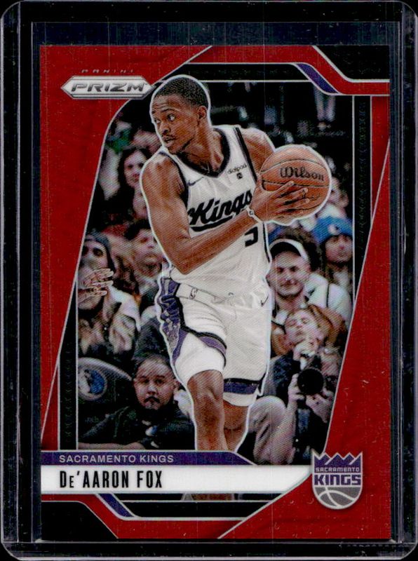 The De'Aaron Fox 2024 Prizm #58 Red /299 card is 1 of 92 De'Aaron Fox's card variations in the 2024 Prizm set being tracked by Sports Card Investor, including Base, Choice Blue Yellow Green, Fast Break, Green, and Green Ice.