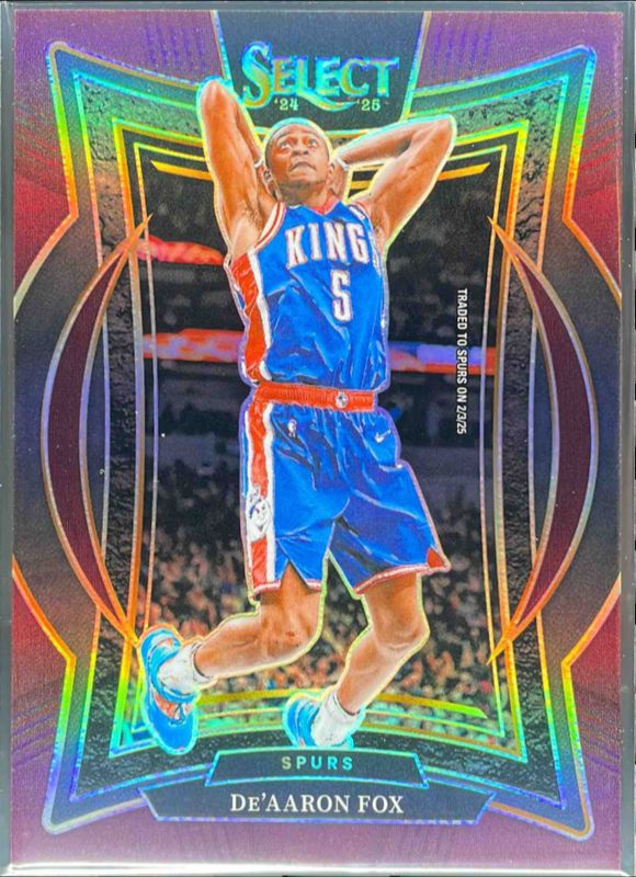 The De'Aaron Fox 2024 Select #3 Concourse Maroon /175 card is 1 of 244 De'Aaron Fox's card variations in the 2024 Select set being tracked by Sports Card Investor, including Concourse, Courtside, Mezzanine, Premier Level, and Concourse Blue Cracked Ice.