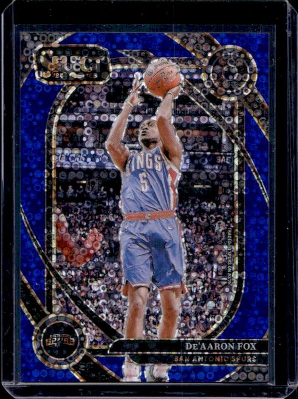 The De'Aaron Fox 2024 Select #239 Courtside Blue Disco /25 card is 1 of 244 De'Aaron Fox's card variations in the 2024 Select set being tracked by Sports Card Investor, including Concourse, Courtside, Mezzanine, Premier Level, and Concourse Blue Cracked Ice.