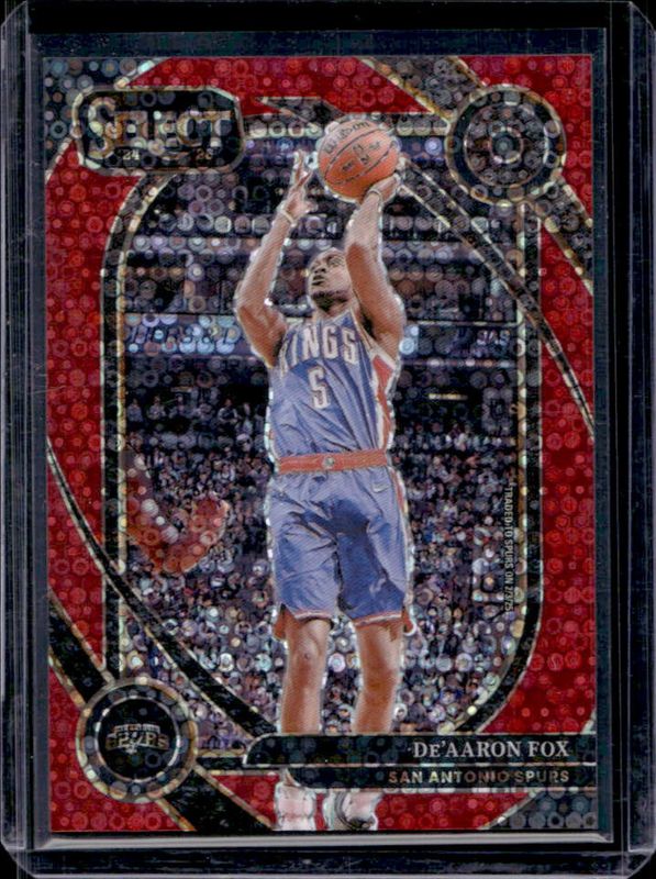 The De'Aaron Fox 2024 Select #239 Courtside Red Disco /49 card is 1 of 244 De'Aaron Fox's card variations in the 2024 Select set being tracked by Sports Card Investor, including Concourse, Courtside, Mezzanine, Premier Level, and Concourse Blue Cracked Ice.