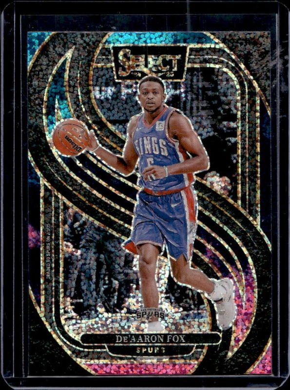 The De'Aaron Fox 2024 Select #150 Premier Level Cosmic /(SSP) card is 1 of 244 De'Aaron Fox's card variations in the 2024 Select set being tracked by Sports Card Investor, including Concourse, Courtside, Mezzanine, Premier Level, and Concourse Blue Cracked Ice.