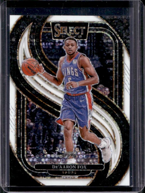 The De'Aaron Fox 2024 Select #150 Premier Level White Disco /75 card is 1 of 244 De'Aaron Fox's card variations in the 2024 Select set being tracked by Sports Card Investor, including Concourse, Courtside, Mezzanine, Premier Level, and Concourse Blue Cracked Ice.