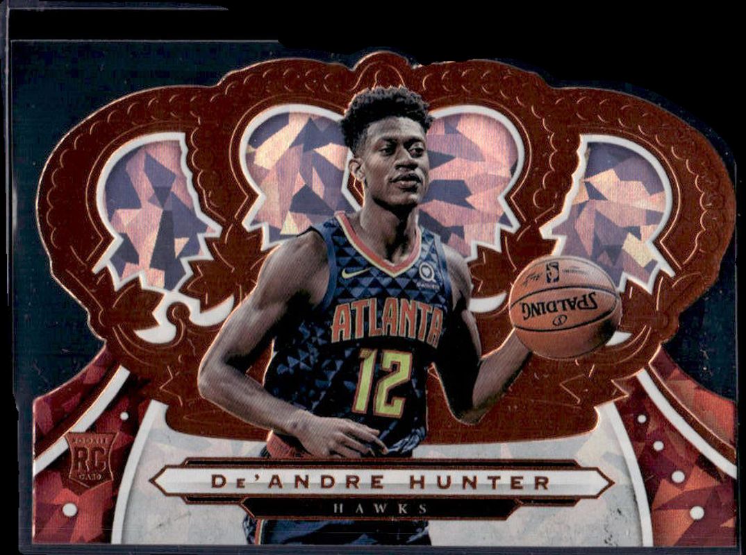 The De'Andre Hunter 2019 Crown Royale #49 Crystal Rookie card is 1 of 38 De'Andre Hunter's card variations in the 2019 Crown Royale set being tracked by Sports Card Investor, including #116 Base, #49 Base, #49 Crystal Blue /99, #49 Crystal Red /49, and #49 Crystal Purple /25.