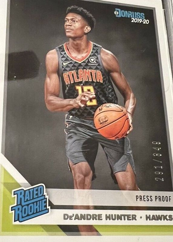 The De'Andre Hunter 2019 Donruss #204 Press Proof Silver /349 Rookie card in Raw condition has not changed in price in the last 30 days and was last sold for $4.99 .