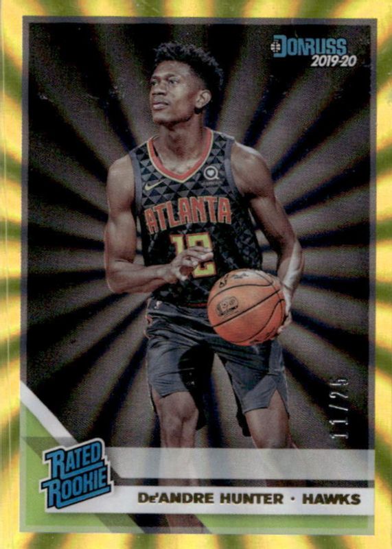 This card is 1 of 19 De'Andre Hunter's card variations in the 2019 Donruss set being tracked by Sports Card Investor, including Base, Green Flood, Green & Yellow Laser, Infinite, and Orange Laser.