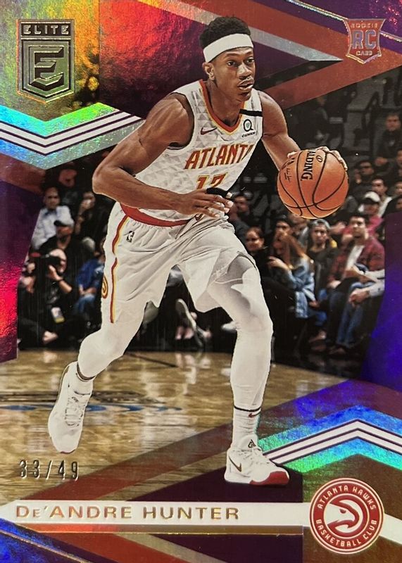 This card is 1 of 15 De'Andre Hunter's card variations in the 2019 Elite set being tracked by Sports Card Investor, including Base /299, Base Rookie /299, Aspirations (/88), Red, and Status (/12).