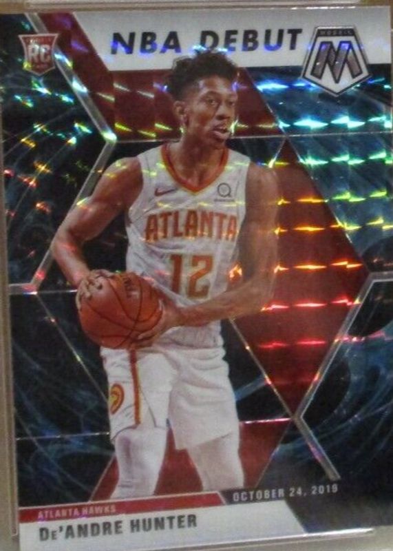 The De'Andre Hunter 2019 Mosaic #266 NBA Debut - Genesis /(SSP) Rookie card in Raw condition has not changed in price in the last 30 days and was last sold for $21.50 .
