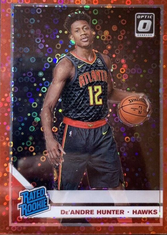 The De'Andre Hunter 2019 Optic #198 Fast Break Red /85 Rookie card in Raw condition has not changed in price in the last 30 days and was last sold for $14.34 .
