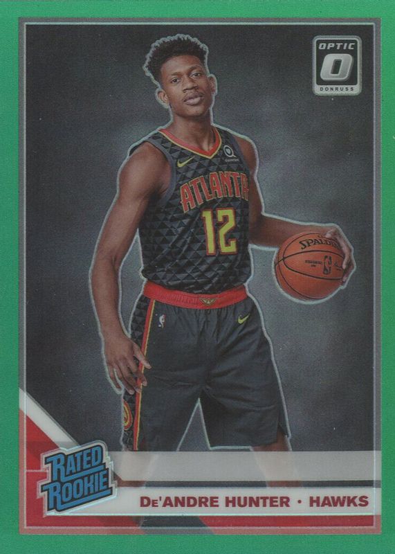 The De'Andre Hunter 2019 Optic #198 Green /5 Rookie card in Raw condition has not changed in price in the last 30 days and was last sold for $799.99 .