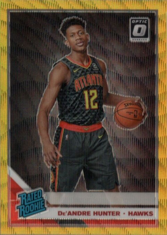The De'Andre Hunter 2019 Optic #198 Tmall Gold Wave Rookie card in Raw condition has not changed in price in the last 30 days and was last sold for $16.21 .