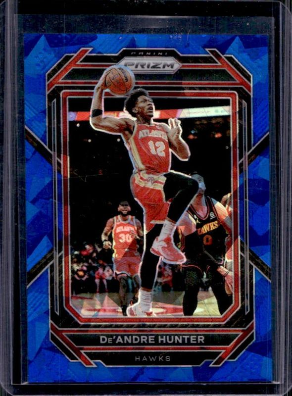 The De'Andre Hunter 2022 Prizm #154 Blue Ice /125 card is 1 of 58 De'Andre Hunter's card variations in the 2022 Prizm set being tracked by Sports Card Investor, including Base, Blue Wave, Choice Blue Yellow Green, Fast Break, and Green.