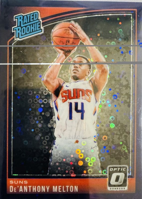 The De'Anthony Melton 2018 Optic #181 Fast Break Purple /95 Rookie card in Raw condition has not changed in price in the last 30 days and was last sold for $1.55 .