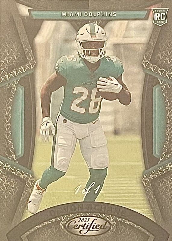 De'Von Achane 2023 Certified #160 FOTL Mirror Black /1 Rookie RAW Price Guide