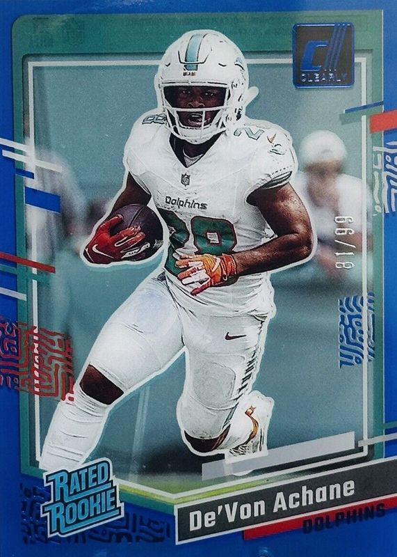 2023 Panini Clearly Donruss Rated Rookie De'Von Achane #59 Blue /99 RC Dolphins