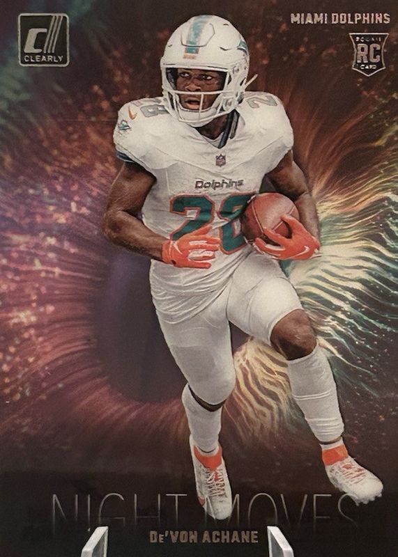 The De'Von Achane 2023 Clearly Donruss #20 Night Moves /(SSP) Rookie card in Raw condition has not changed in price in the last 30 days and was last sold for $29.00 .