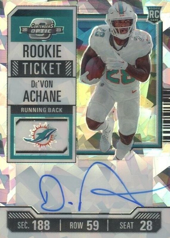 De'Von Achane 2023 Contenders Optic #109 Rookie Ticket Auto - Cracked Ice /22 RAW Price Guide