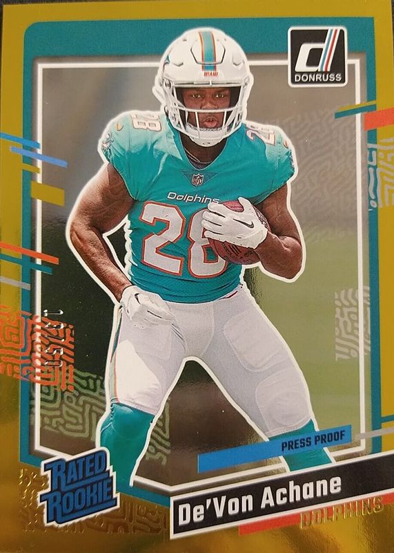 De'Von Achane 2023 Donruss #365 Press Proof Gold /50 Rookie RAW