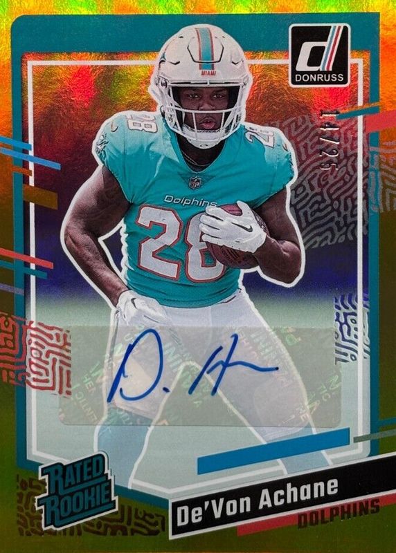 De'Von Achane 2023 Donruss #365 Rated Rookie Autographs - Gold /25 RAW Price Guide