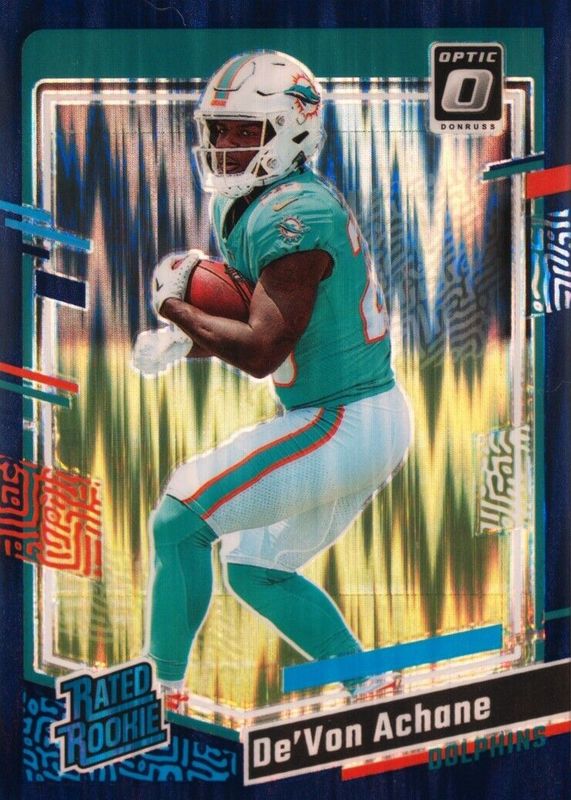 The De'Von Achane 2023 Optic #269 Purple Shock Rookie card in Raw condition has moved up $2.04 (+188%) in the last 30 days and was last sold for $3.13 .