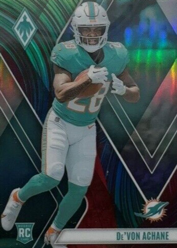 This card is 1 of 40 De'Von Achane's card variations in the 2023 Phoenix set being tracked by Sports Card Investor, including Base, Color Burst, Silver, Silver Seismic, and Fire Burst /340.