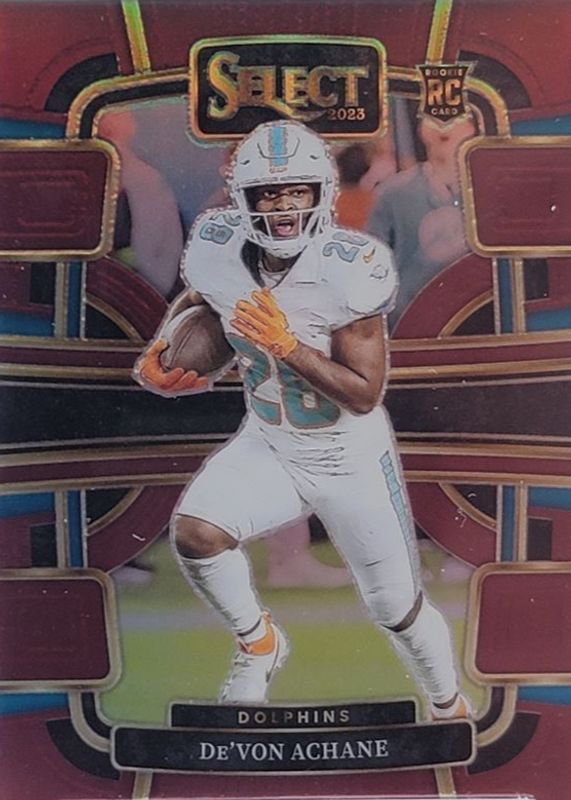 The De'Von Achane 2023 Select #63 Concourse Maroon /149 Rookie card in Raw condition has not changed in price in the last 30 days and was last sold for $4.00 .