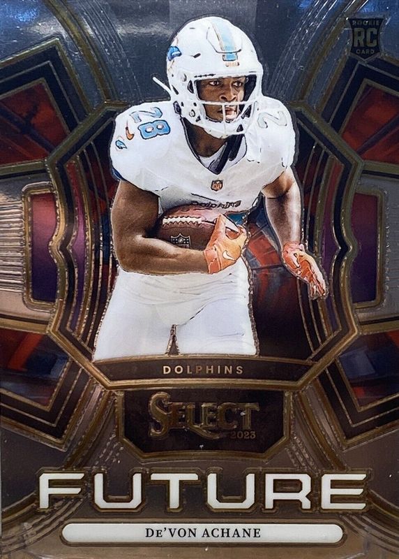 The De'Von Achane 2023 Select #FUT-DAC Select Future Rookie card in Raw condition has moved up $0.30 (+17.8%) in the last 30 days and was last sold for $1.99 .